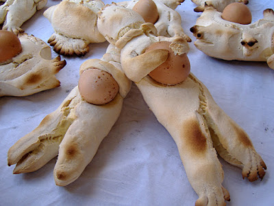 Especificamente, existem algumas categorias de alimentos que entram no consumo de férias com uma imagem particular, inusitada em relação àquela ligada à vida cotidiana; a pão constitui um exemplo significativo disso. De facto, para o consumo alimentar relacionado com o dia da Páscoa, este alimento essencial para o homem transforma-se, assumindo um aspecto quase solene, graças às muitas e belas formas que lhe são dadas mas também, aspecto não menos importante, aos ingredientes utilizados para a sua preparação.